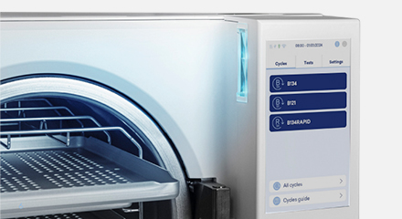 Функция напоминания о тестах и световая индикация стадий стерилизации повышают безопасность и обеспечивают наглядный контроль каждого цикла.