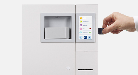 4,3-дюймовый сенсорный экран с понятными иконками обеспечивает простую навигацию и полный контроль над процессами. Автоклав оптимизирован для снижения энергопотребления и ускорения задач технического обслуживания.